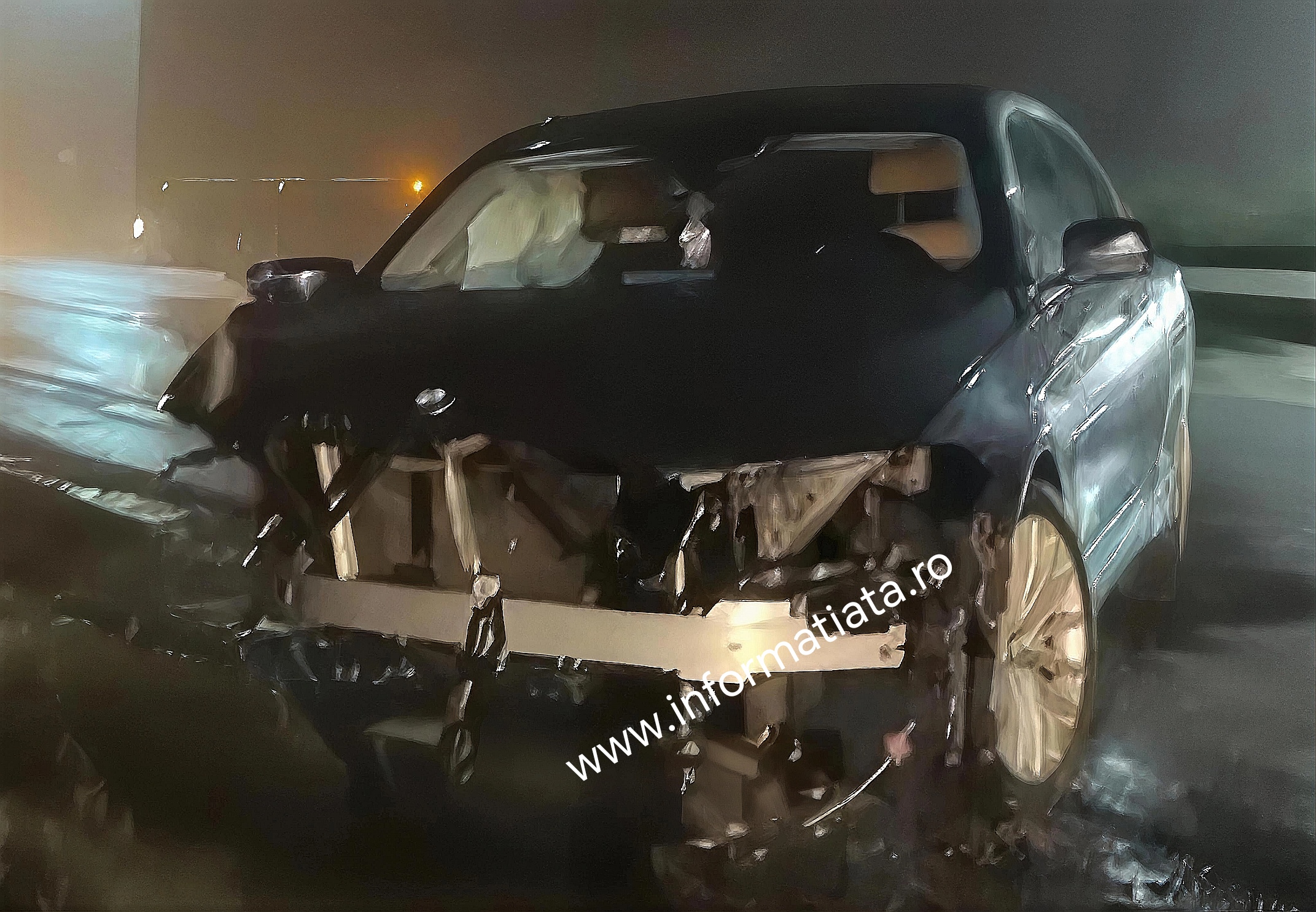 Bolidul a intrat în coliziune cu partea dreapta spate cu axa II a unei semiremorci care era tractată de autoutilitara N3 marca Scania S460.