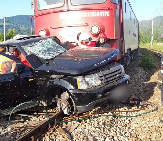Mașină lovită de tren, la Câmpulung Moldovenesc VIDEO