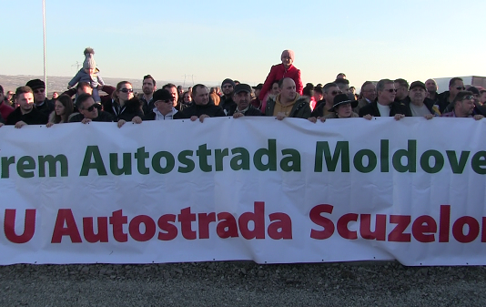 Protest la autostrada de un metru a Moldovei. S-a deschis muzeul autostrăzii și a fost montată o bornă uriașă VIDEO