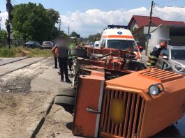 Utilaj agricol acroșat de tren, pe raza municipiului Rădăuți FOTO