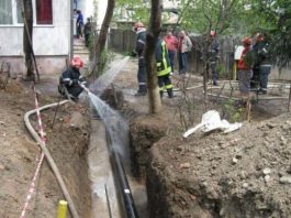 Țeavă de gaz, spartă cu buldo-excavatorul, în George Enescu