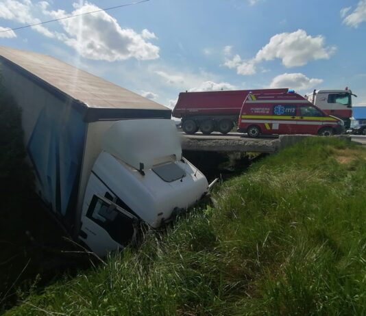 Tir răsturnat în șanț, la Fântâna Mare FOTO